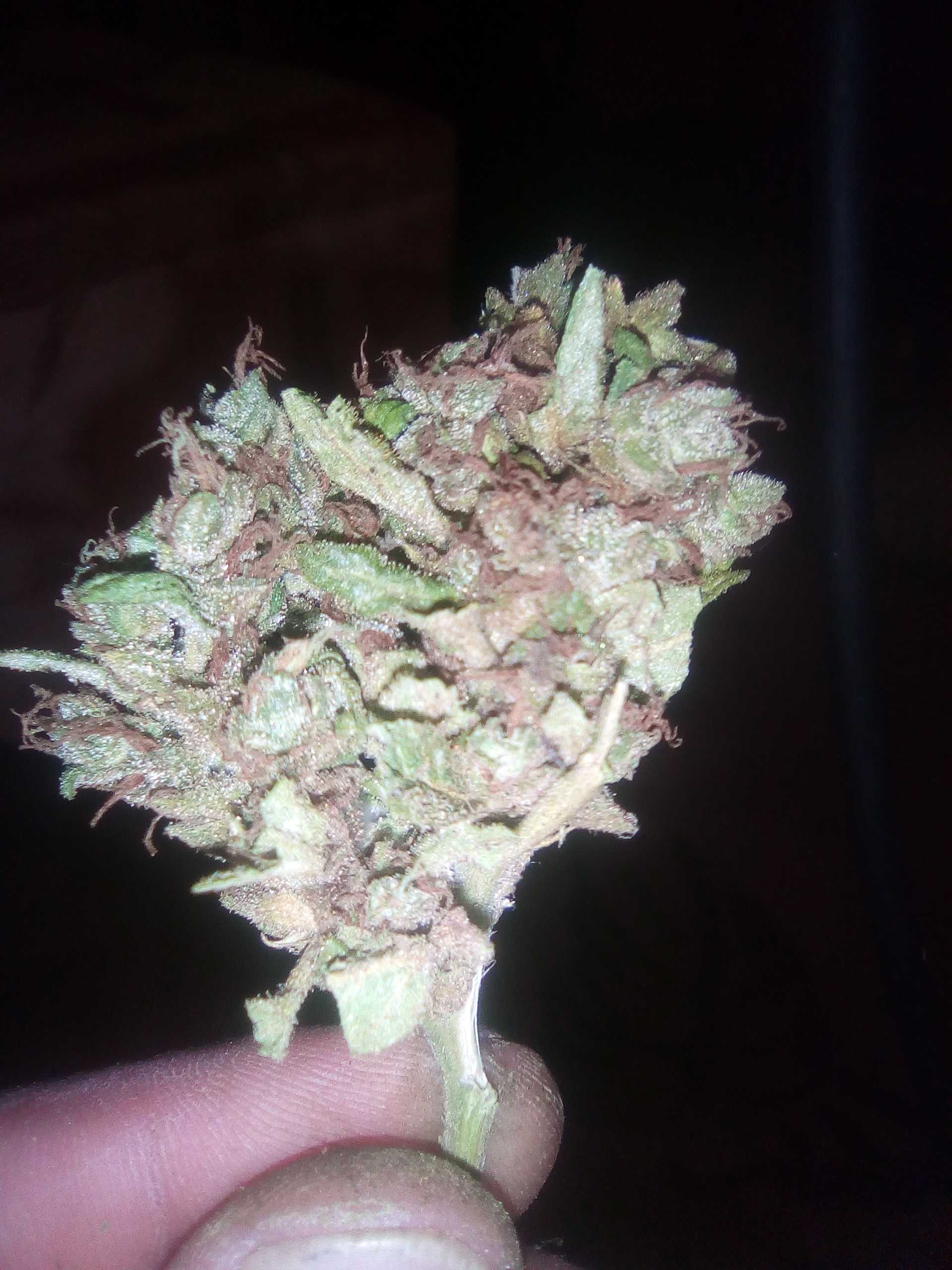 Всем привет!!! Вот и закончились летние каникулы а это значит? Да вот именно, урожай. очень по душе пришелся этот сорт напоминает старую добрую афгаку типичная индика но у меня один кустик был посажен в низменности по этому вырос маленький так как его постоянно заливало, а в целом бомба даже старая гвардия отказывалась от второй хапки только погодя 3х часового стоуна курили половину того что кур. пер. раз. и ещё нужно под черкнуть быстро спелость сорта за короткие 50 дней получил то что ниже на фото