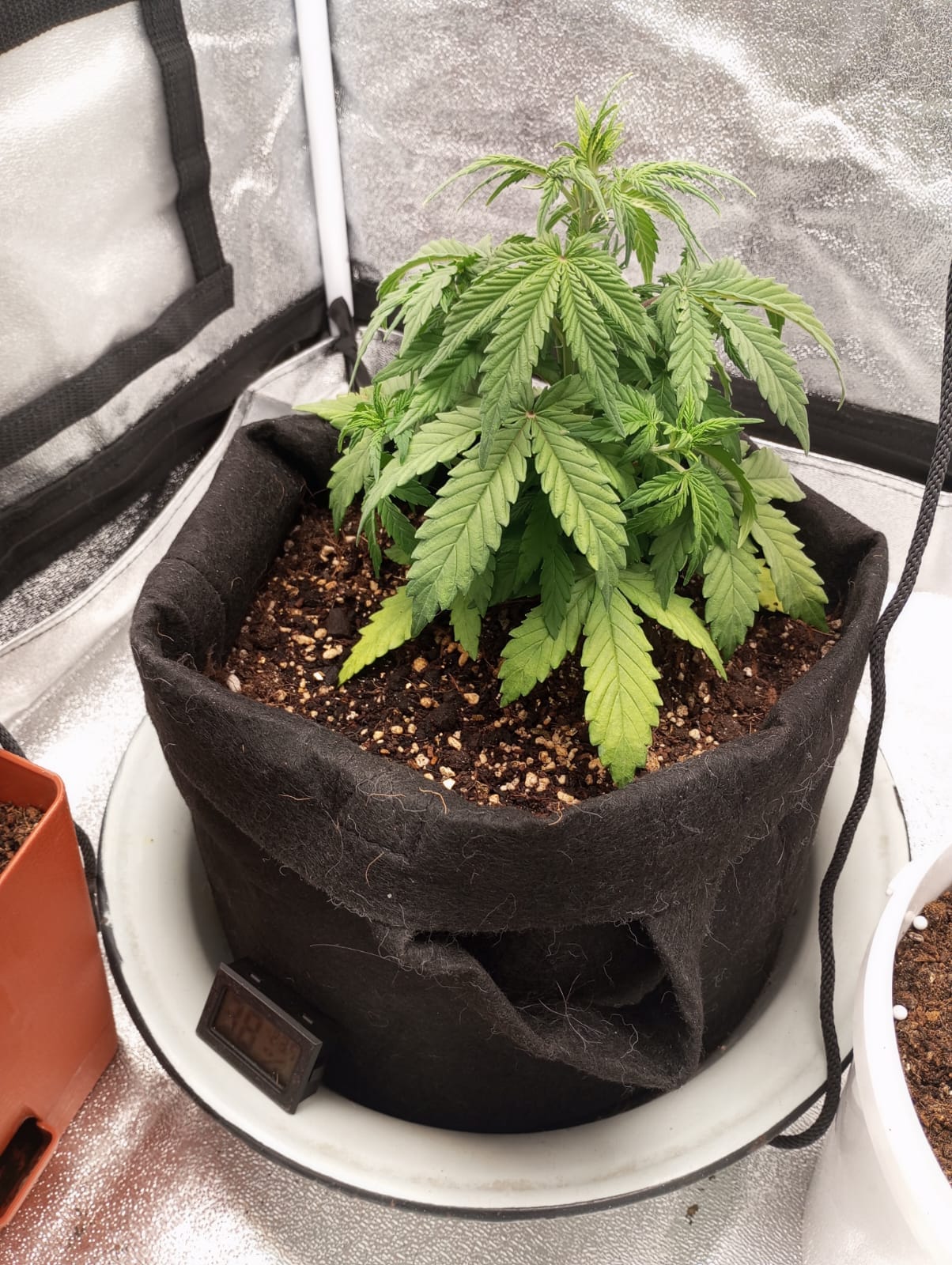 Засадил две бонусные семки с разницей в 10 дней, одна из них потерпела две фатальные пересадки из непромытого кокоса в грунт biobizz light mix, и затем в горшок по-больше в обычный грунт для цветов в котором было 5.0 EC(это дох*я если что, слава богу заметил позже при проливе и исправил). Сказать что я ох*ел - ничего не сказать, растишка была присмерти дважды из-за моих кривых рук, я уже думал выбросить на помойку, потому что выглядила она так, словно уже умерла, вся желтая, листва полуживая. Но спустя 3 дня после промывки грунта она ожила, окрепла, быстро вернула фототропизм и восстала из мертвых, начала быстро набирать мощь, начала направлять верхушку в сторону лампы, желтизна пропала и начала фотосинтезировать как на дрожжах без удобрений. Никогда не видел такого сильного стремления выжить 😊. Хорошо, что не сдался и дал ей шанс на поправку. В такие моменты понимаешь насколько сильная генетика, благодарю за это сидбанк GrowerZ. И да, мои условия не самые подходящие, влажность воздуха достаточно низкая, этот сорт не особо любит низкую влажность и температуру выше 29°C