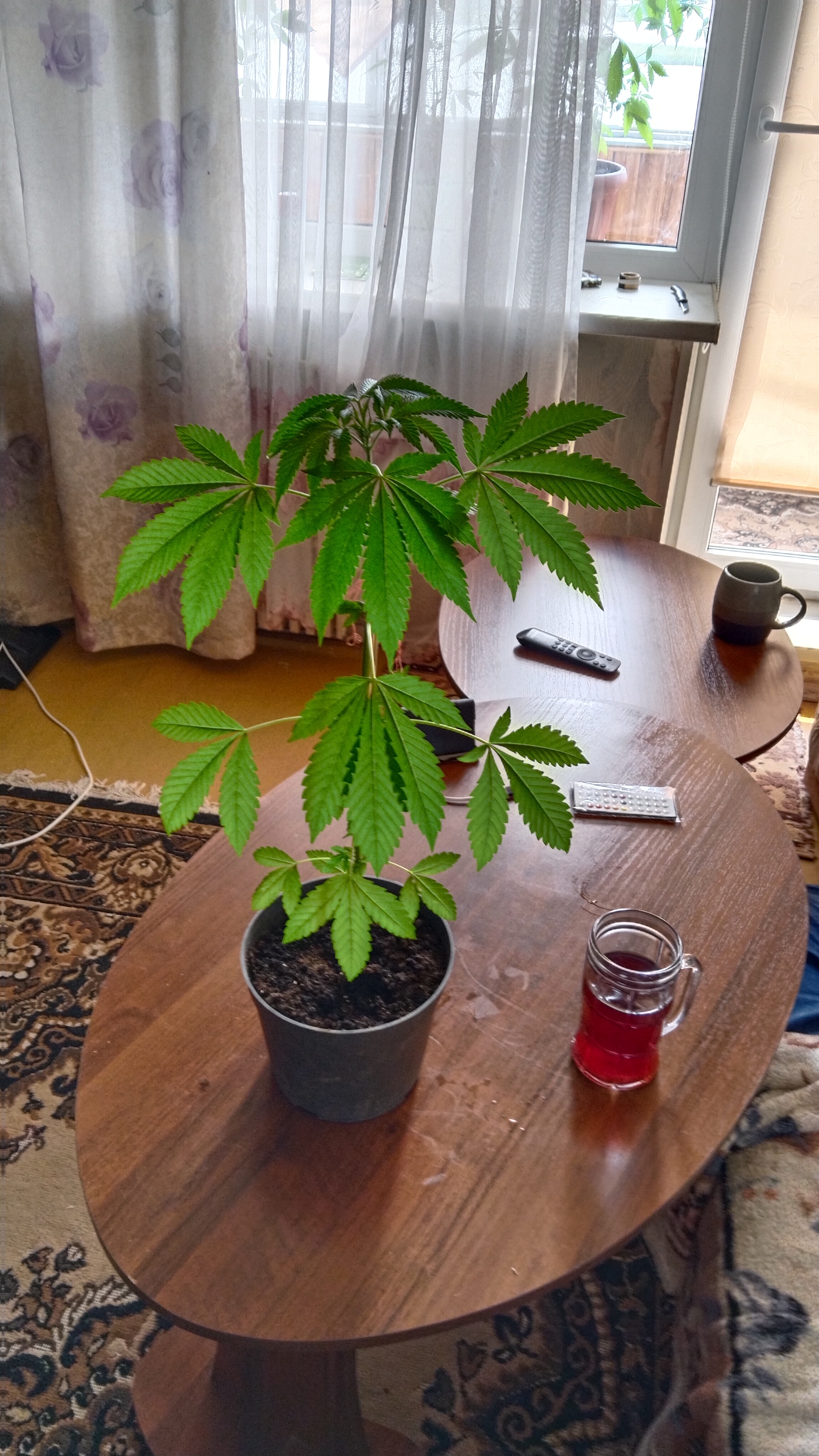 Бонусом упала! Не трогал вообще в плане тренировки, крепкое растение, толстые стволы, колы боковые вровенб центральной, сахара пипец валит, бошки каменные, плотные, растёт быстро, жрёт много! Фото с ней мало!
